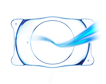 EVO+아쿠아 ICL은 Central FLOW 기술을 이용하여 중앙의 작은 홀(360㎛m)을 통해 자연스러운 방수의 흐름이 가능하게 함으로써 홍채절개술의 필요성을 없애 통증을 감소시켜 주었습니다. 이에 따라 홍채절제술을 위해 추가로 내원해야 했던 기존 ICL의 번거로움을 피할 수 있게 되었으며, 홍채절개부위에서 빛이 새어 들어와 나타나는 ‘흰줄현상’도 발생하지 않습니다.