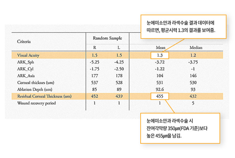 눈에미소안과 라섹 실제 수술결과 통계 데이터