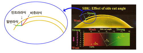 각막절편 가장자리 경사각이 클수록 각막절편이 뚜껑처럼 각막에 단단히