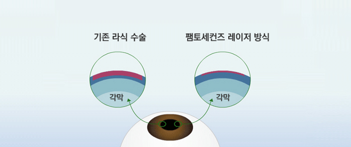 레이저(팸토세컨)를 이용하여 각막의 절편을 만드는 방식입니다.