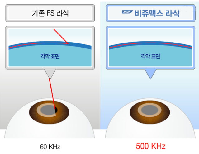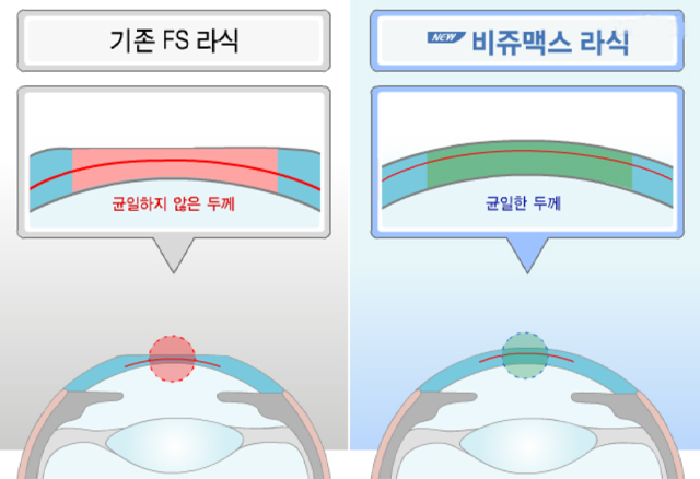 1. 각막절편 두께를 얇게 만들어 수술 후 남는 각막잔여량이 기존 라식보다 더 두꺼워