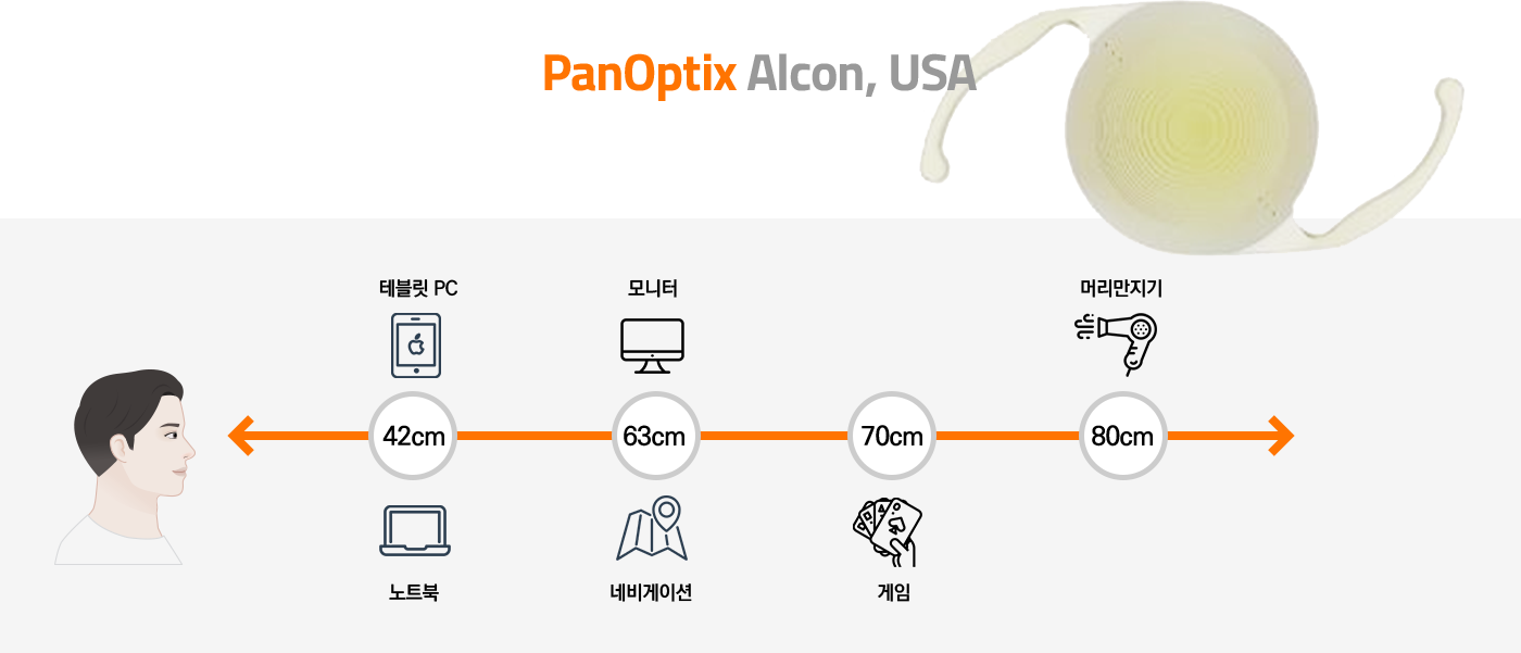 ・ 알콘팬옵틱스는 40~80cm까지 연속적인 시야 확보를 통해 수술 후 자연스럽게 일상생활에 적응할 수 있습니다.
